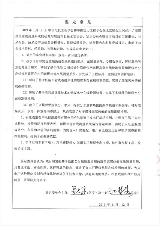 2019年6月12日,中國電機工程學會和中國動力工程學會在北京聯合組織召開了燃煤熱值在線測量系統(tǒng)的研究與應用項目技術鑒定會。