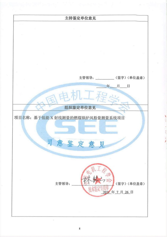 2021年7月20日,中國電機(jī)工程學(xué)會(huì)在北京組織召開了“基于低能X射線測量的燃煤鍋爐風(fēng)粉量測量系統(tǒng)”項(xiàng)目技術(shù)鑒定會(huì)。